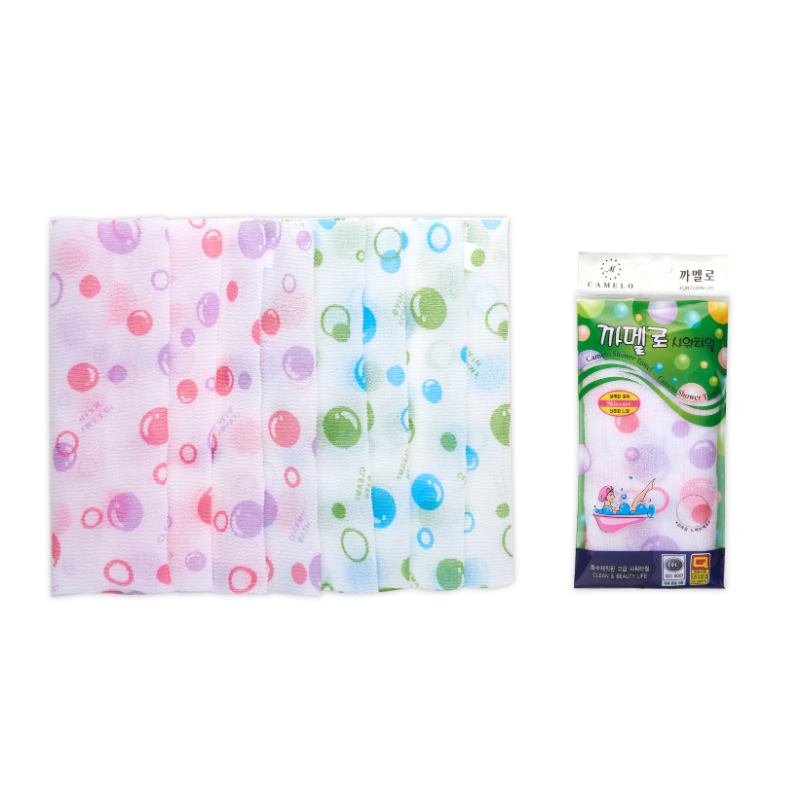 Khăn tắm vân hoa Camelo Camelo Shower Towel Khăn tắm vân hoa CameloHàn Quốc được làm từ chất liệu cao cấp, an tòan cho da. Với chất liệu 70% nilon, 30% cotton tạo sự co