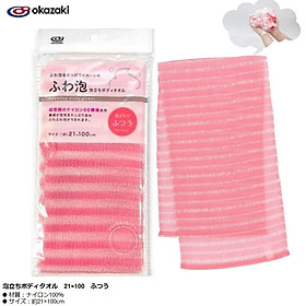 Khăn tắm tạo bọt mịn Okazaki 10×100㎝ THÔNG TIN SẢN PHẨM Xuất xứ: Nhật Bản - Màu sắc: Màu hồng | Màu xanh(Giao ngẫu nhiên) - Kích thước: 10×100㎝ - Chất liệu:100% Polyester cao cấp