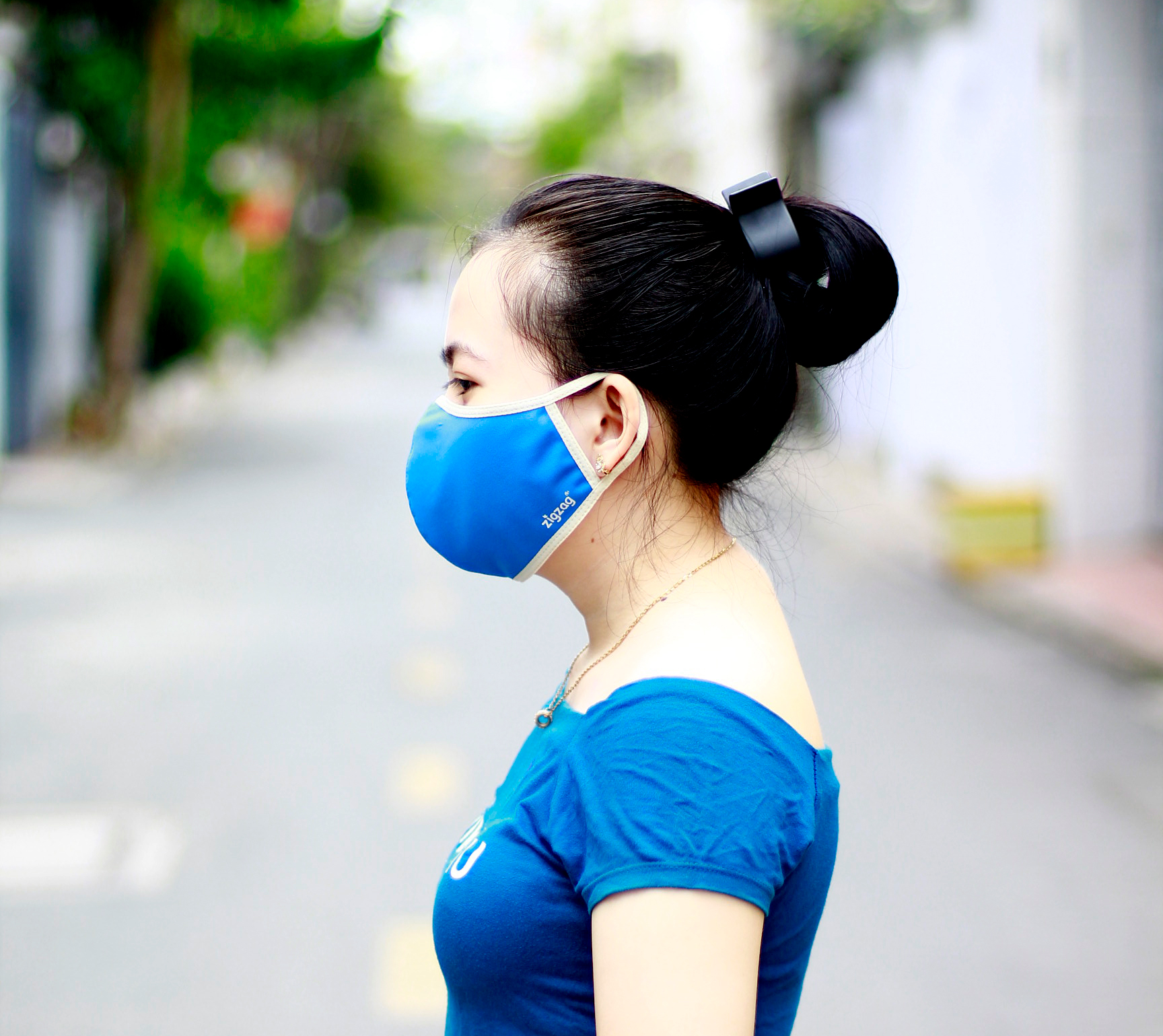 ✨Khẩu trang chống nắng 2 lớp UPF50+ Zigzag MAS010 - Freesize - Xanh da trời