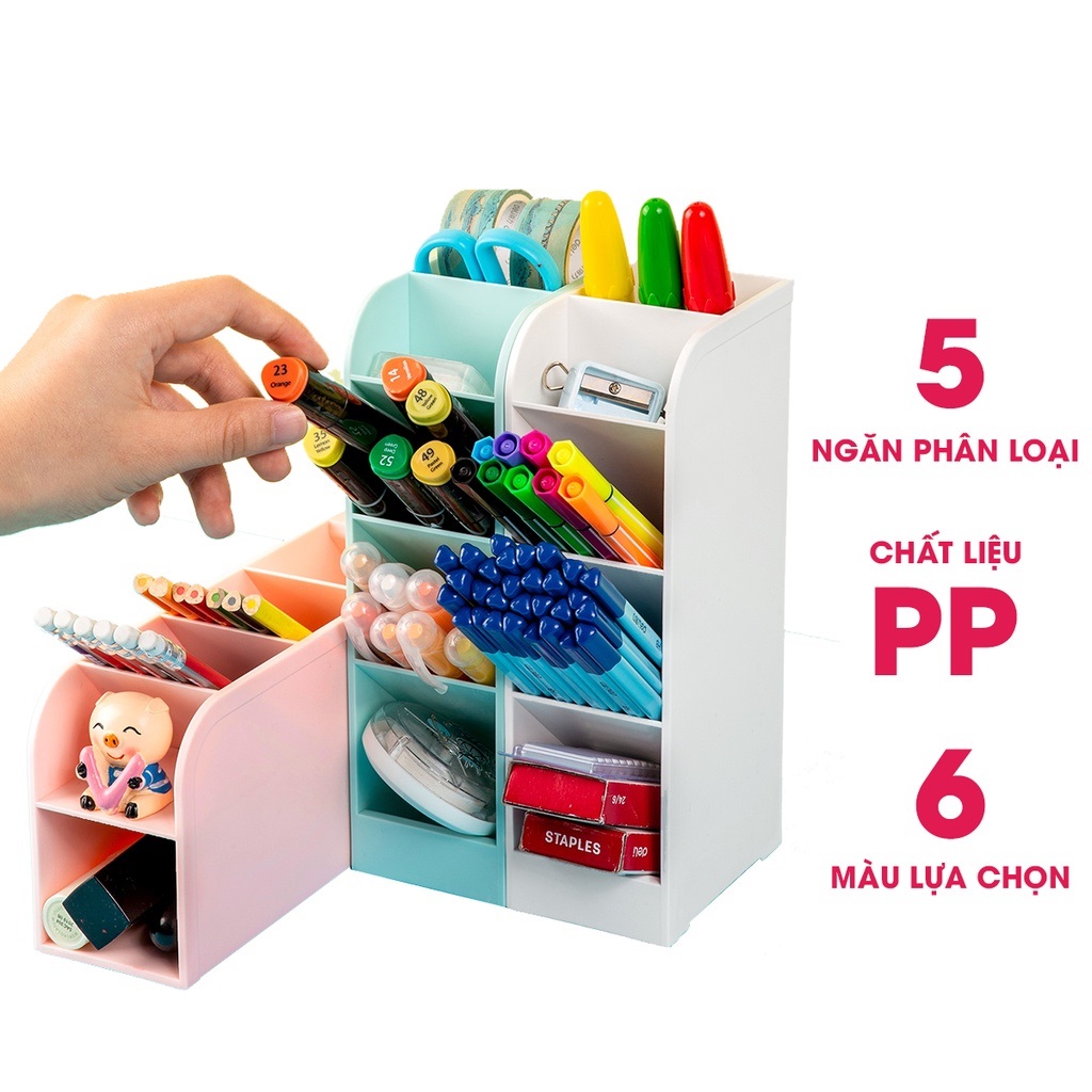 Mua tại Tiktok- Khay đựng bút làm từ nhựa PP rất bền chắc, với 4 ngăn đứng và 1 ngăn nằm, có thể để đứng hoặc nằm tùy theo không gian bàn học hoặc làm việc.