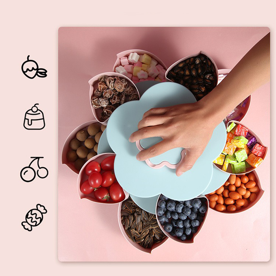 Khay hộp đựng Mứt Ngày Tết HÌnh Cánh Hoa Xoay 2 Tầng