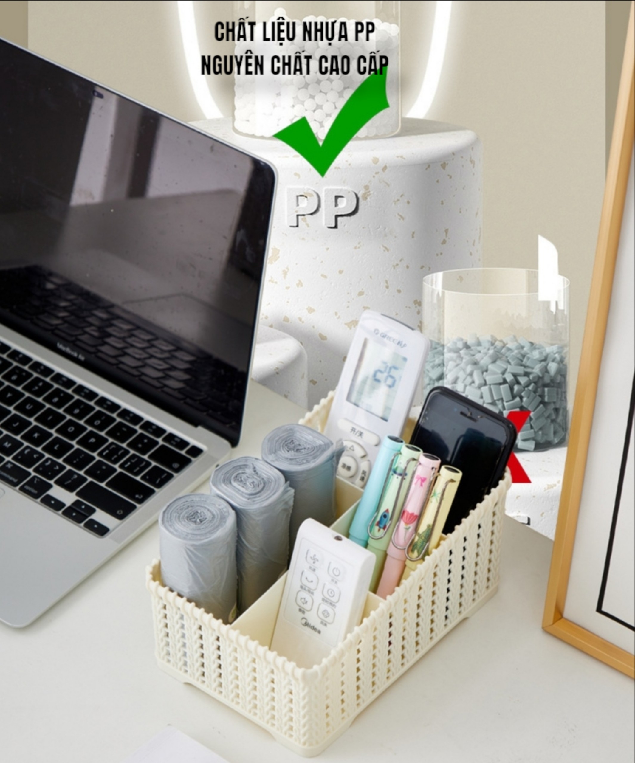 ✨Khay đựng mỹ phẩm cao cấp nhiều ngăn kiểu dáng mây đan HÀN QUỐC ( Tặng vỉ dán tường )