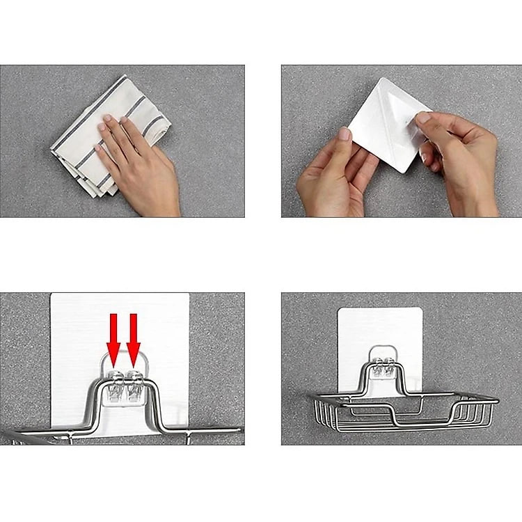 - Móc dán siêu chắc, giữ khay xà bông chắc chắn mà không cần khoan đục tường.