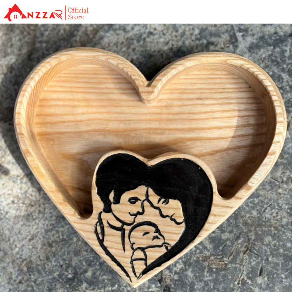 Khay Gỗ Trái Tim Khắc Hoa | Quà Tặng Gỗ Óc Chó Sang Trọng