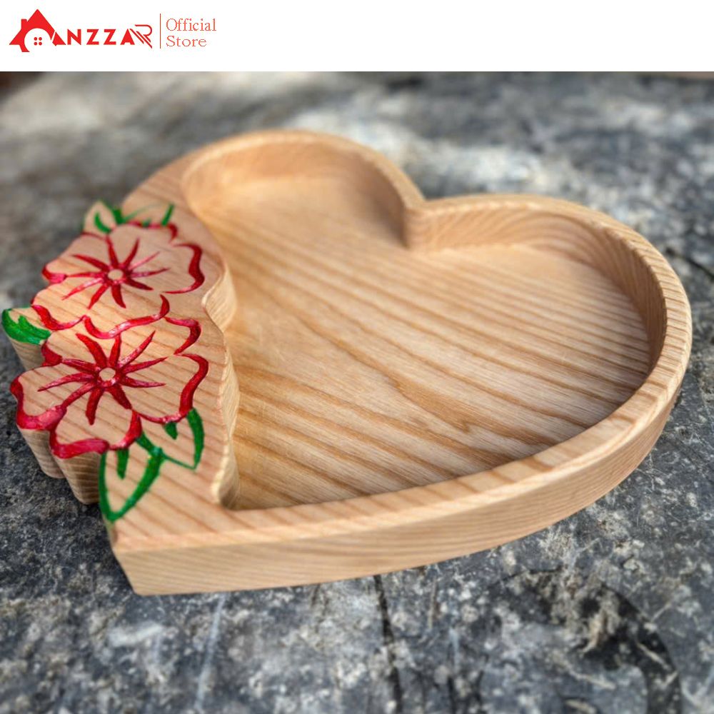 ✨Khay gỗ trái tim khắc hoa Anzzar, khay gỗ trang trí, đựng bánh kẹo, quà tặng decor, khay gỗ đựng mứt, bánh kẹo-01