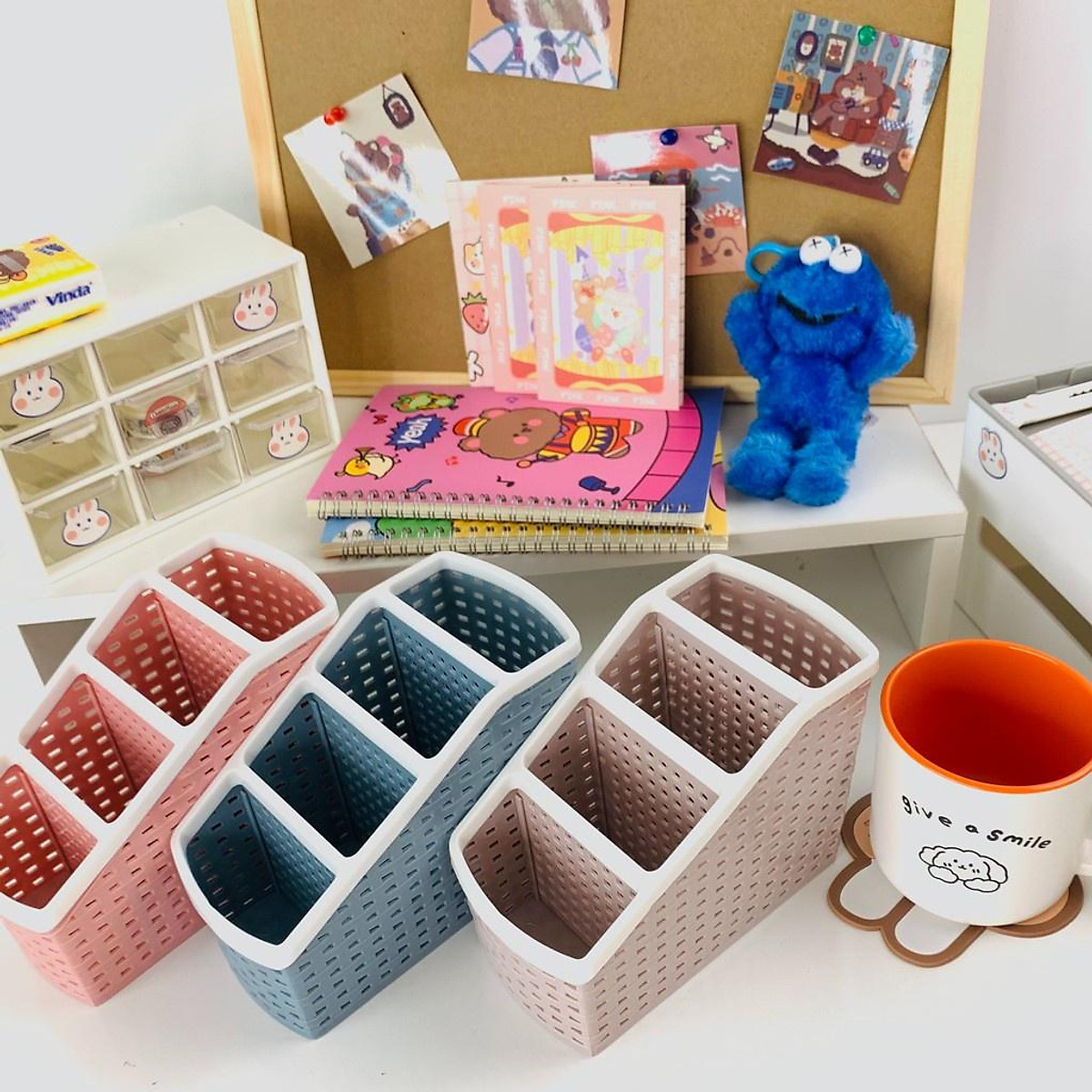 - Hộp đựng bút để bàn cao cấp bằng thép sơn tĩnh điện cứng chắc. - Kệ đựng bút để bàn nhiều ngăn đựng tiện dụng, dùng như hộp đựng bút văn phòng, hộp đựng