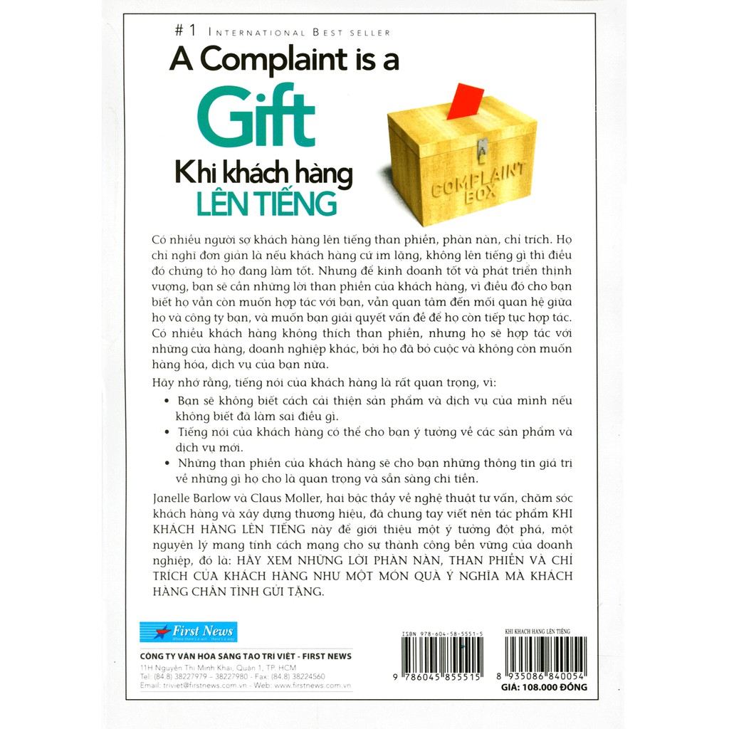 Trong cuốn Khi Khách Hàng Lên Tiếng, bậc thầy Janelle Barlow và Claus Moller đã giới thiệu một ý tưởng đột phá mang tính cách mạng: Biến những lời phàn nàn, chỉ trích thành một món quà. Thật vậy, lời phàn nàn của khách hàng là thông tin phản hồi quý báu có thể giúp các doanh nghiệp cải thiện chất lượng sản phẩm, nâng cấp dịch vụ, ứng xử của con người và xác định trọng tâm định hướng sản xuất, kinh doanh, thị trường một cách nhanh chóng, hiệu quả và ít tốn kém nhất.