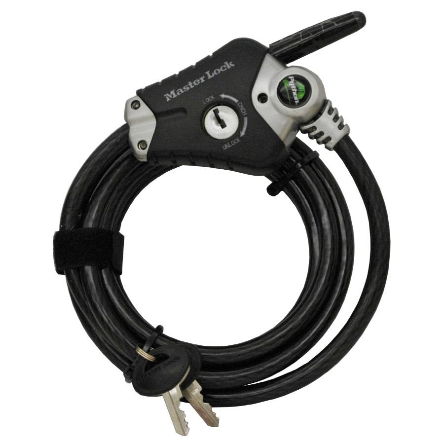 KHÓA DÂY XE ĐẠP MASTERLOCK 8126EURD Dây cáp dài 1.8m, chất liệu thép cuộn bọc Vinyl. Một màu đen Đường kính dây 8mm Gồm 02 chìa Ứng dụng khóa xe đạp