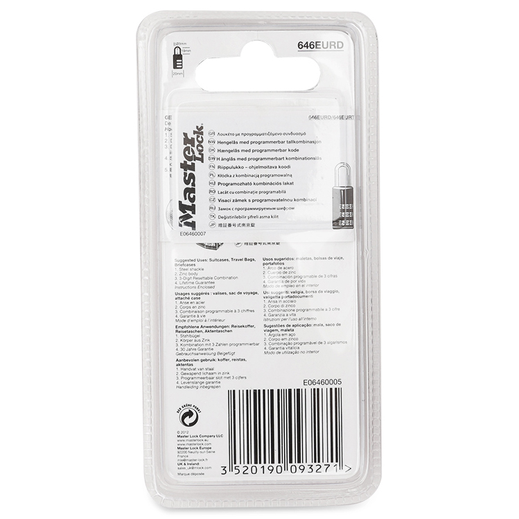 Khóa Vali Số Master 646 EURD Khóa Vali Số Master 646 EURD gồm có 1 ổ khóa trong 1 vĩ. Ổ khóa được thiết kế nhỏ nhắn, xinh xắn cùng chất lượng cao luôn đem