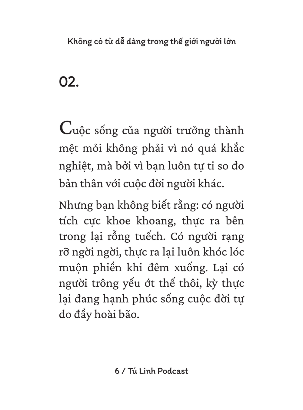Nếu cậu đang cảm thấy cuộc sống của người trưởng thành sao khó khăn quá, vậy thì hãy để cuốn sách "Không có từ dễ dàng trong thế giới người lớn" bầu bạn cùng cậu trên hành trình này nhé!