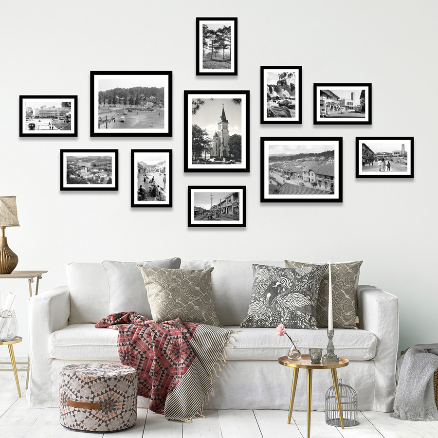 ✨Khung Ảnh Treo Tường Hình Ảnh Đà Lạt Xưa Phong Cách Trắng Đen Nghệ Thuật Tặng Kèm bộ ảnh như hình mẫu, đinh treo tranh và sơ đồ treo - PGC291