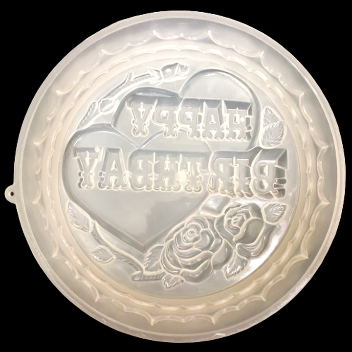 ✨Khuôn rau câu sinh nhật trái tim đôi Happy Birthday – Khuôn hình tròn loại 25 cm - Mã số 1019
