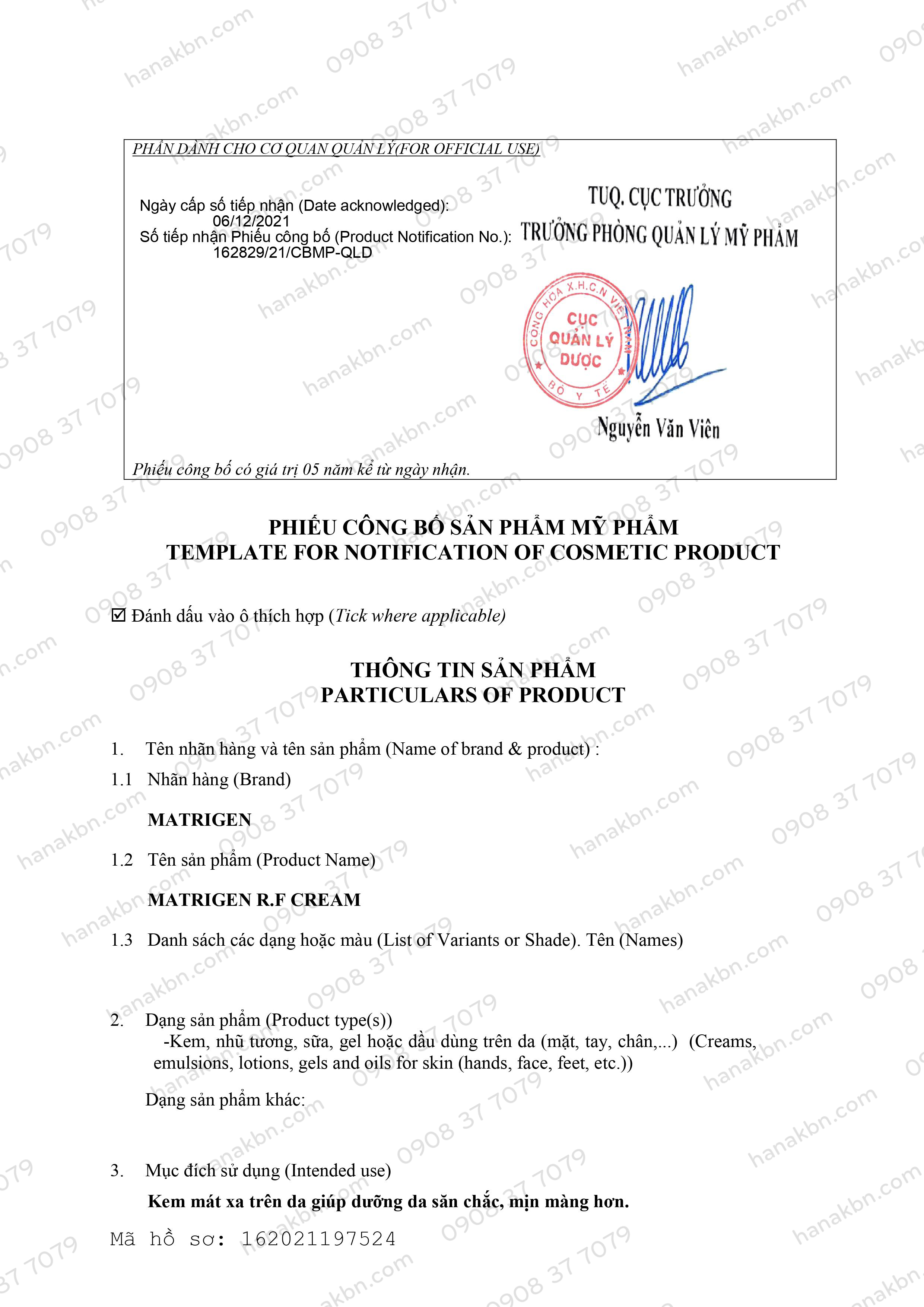- Sử dụng cho cả mặt và body CÁCH SỬ DỤNG – Bước 1: Làm sạch da mặt bằng sữa rửa mặt. – Bước 2: Sau đó lấy 1 lượng Kem Massage RF Matrigen Hàn Quốc 800ml vừa đủ thoa lên vùng trán, má, cằm và massage nhẹ nhàng bằng hai ngón tay giữa theo chuyển động tròn. – Bước 3: Để tăng cường hiệu quả chống lão hóa da, chị em nên sử dụng thêm các loại Serum khác. ĐỐI TƯỢNG SỬ DỤNG