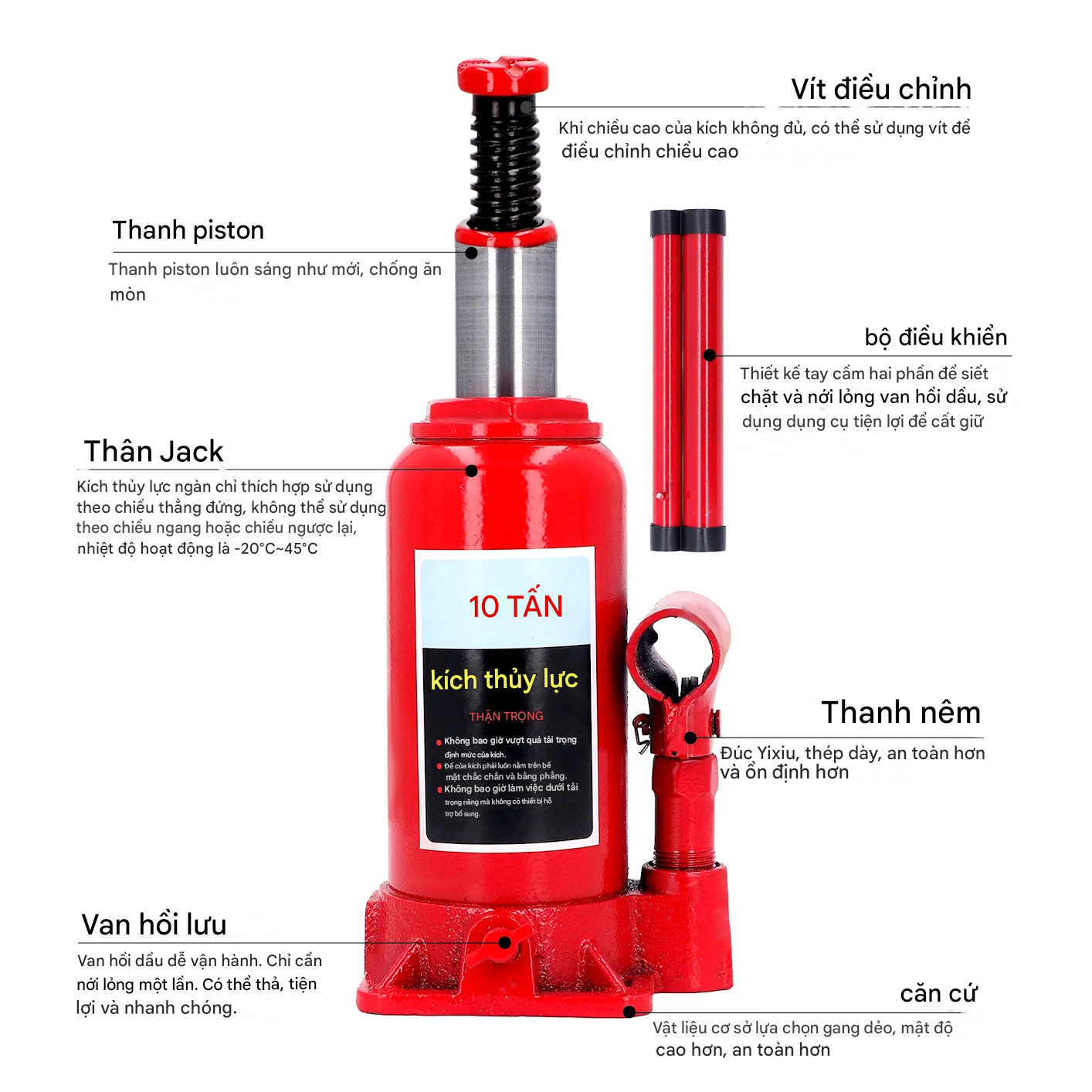 ️Lưu ý: dòng kích này chỉ làm việc tư thế thẳng đứng từ dưới lên (không được lộn ngược, không quay ngang) Mô tả sản phẩm: Kích thủy lực gắn xe tải 5 tấn là thiết bị nâng hạ chuyên dụng được lắp cố định dưới khung gầm xe tải. Sản phẩm được thiết kế chắc chắn, vận hành mạnh mẽ bằng cơ cấu thủy lực, giúp nâng toàn bộ phần thân xe lên dễ dàng để kiểm tra, sửa chữa hoặc thay lốp. Đặc điểm nổi bật: