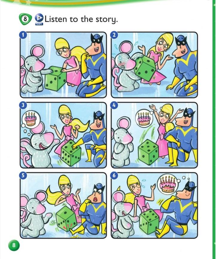 Kid's Box Starter - Unit 1 - Hello - 1 - Listen and point. With comic dialogue box.