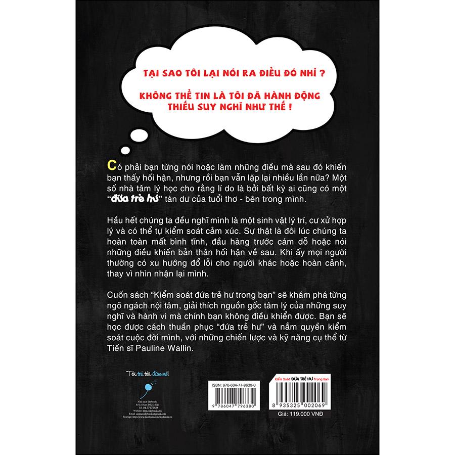 Cuốn sách “Kiểm soát đứa trẻ hư trong bạn” sẽ khám phá từng ngõ ngách nội tâm, giải thích nguồn gốc tâm lý của những suy nghĩ và hành vi mà chính bạn không điều khiển được. Bạn sẽ học được cách thuần phục “đứa trẻ hư” và nắm quyền kiểm soát cuộc đời mình, với những chiến lược và kỹ năng cụ thể từ Tiến sĩ Pauline Wallin.