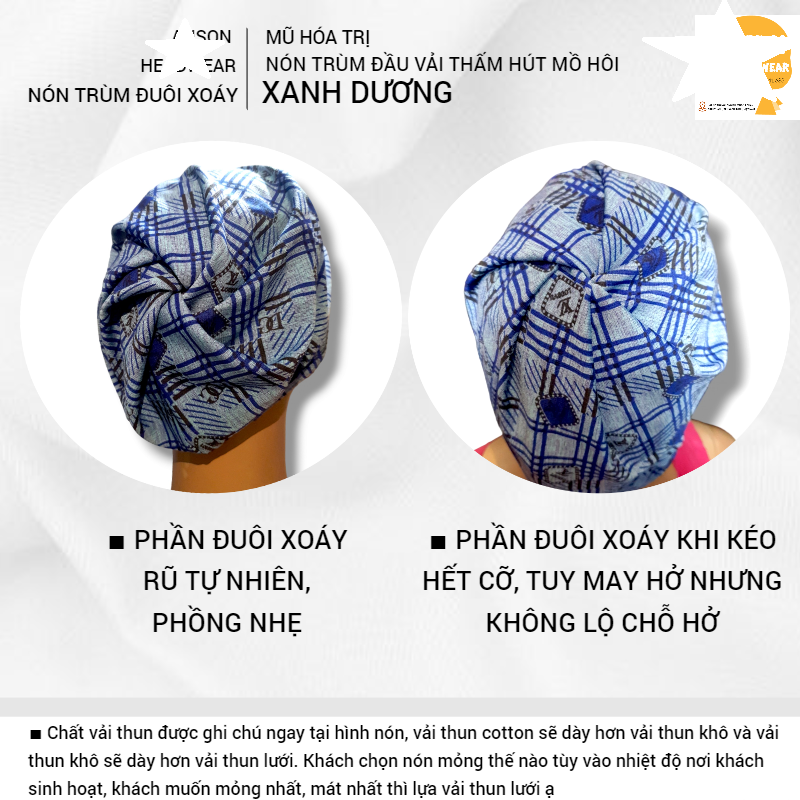 [o]TÊN SẢN PHẨM: [KIỂU TRÙM ĐẦU ĐUÔI XOÁY] Nón vải trùm đầu, bằng vải mát, beanie hat, cancer hat, chemo hat, mũ vải cho bệnh nhân ung thư dễ đội [o]Chất liệu: Vải được chọn