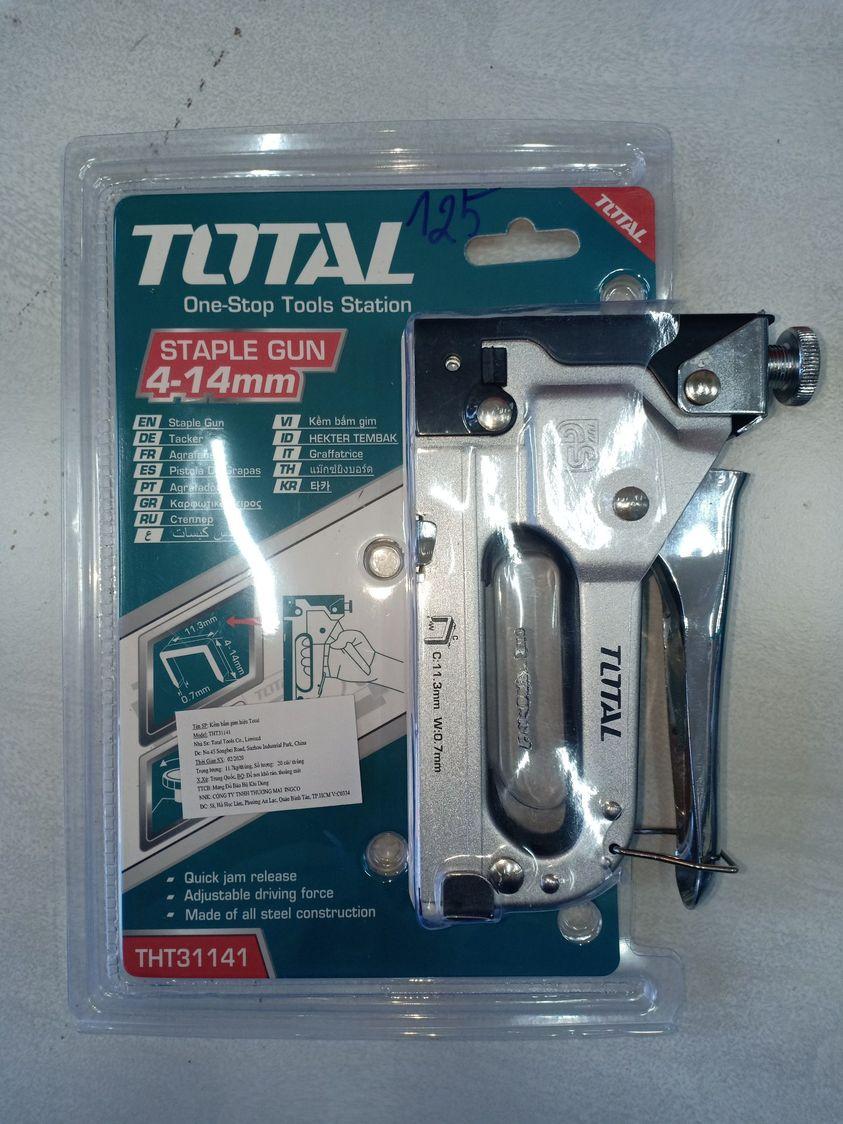-Kích thước kim bấm: 4-14mm, đk ngoài của kim bấm : 11.2mm, độ rộng kim bấm: 1.2mm, trọng lượng: 800g, Kèm theo 1000 cái kim bấm, đóng gói trong vĩ nhựa giấy - 20/T