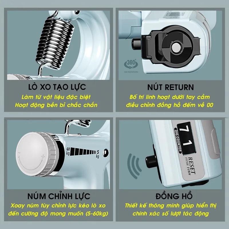 Bộ Kìm Bóp Tay Có Đếm Số Chọn Màu Tập Gym, Cơ Bắp Cổ Tay Cao Cấp Tại Nhà Điều Chỉnh Lực Từ 5 -100kg Cửa hàng D Danido ------ - Tăng sức mạnh cho