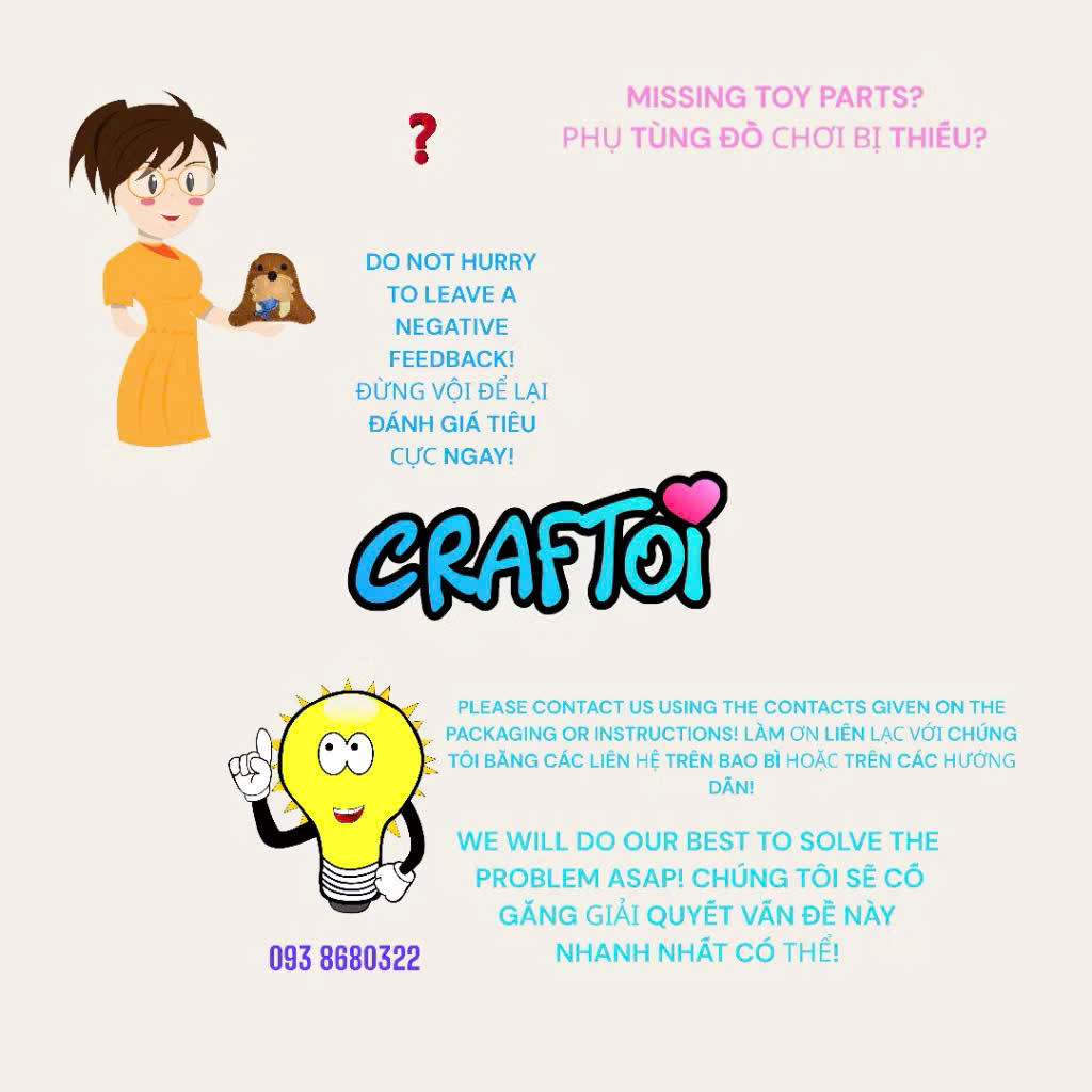 Mã hàng: SEAL SILKY Tuổi sử dụng: 5+ Kích thước: 14x14 cm Một bộ bao gồm: 8 bộ phận làm bằng vải nỉ Bông nhồi Chỉ may và bông nhồi Kim an toàn làm bằng nhựa Bảo quản: trong phòng khô thoáng. Thành phần: polyester, nhựa. Năm sản xuất: 2023 Độ bền của sản phẩm: sử dụng không giới hạn!!! Xuất xứ VIỆT NAM !!!!!!! Được Trung Tâm Giám Định Và Chứng Nhận Hợp Chuẩn Hợp Quy VietCert đánh giá chứng nhận phù hợp Quy chuẩn QCVN 3:2019/BKHCN của Bộ Khoa Học - Công nghệ. Đồ chơi sáng tạo từ nhồi bông. Hãy bắt đầu may con búp bê đầu tiên của bạn!!! Cực kì dễ dàng may với lỗ đục săn và kim làm bằng nhựa rất an toàn. Bé tự may thú bông cho mình Các bạn nhỏ tự tay may vá Vì mất nhiều thời gian tự may, bé sẽ yêu quý con thú bông của mình hơn. Rèn luyện tính kiên nhẫn kỹ năng tư duy logic cho trẻ em Sử dụng vải sang trọng an toàn Mềm mại hơn, thích hợp cho bé chơi Được làm từ bông PP mềm Tự làm thú nhồi bông sẽ giúp trẻ nâng cao kỹ năng tập trung, khéo léo của đôi bàn tay. Đồng thời giúp trẻ trân trọng và nâng niu hơn những gì do chính tay mình làm ra. Bộ sản phẩm handmade Sewing giúp trẻ em tự làm thú nhồi bông một cách dễ dàng. Rất đơn giản, trẻ có thể dễ dàng dùng KIM NHỰA khâu các miếng nỉ được đã đục lỗ sẵn cùng với chỉ thêu đính kèm, và sau đó nhồi thêm bông để tạo ra một con vật vô cùng đáng yêu. Mẹ hãy giúp em thực hiện món đồ này để có những kỉ niệm thật vui với nhau nha! Tất cả đã gói gọn trong bộ sản phẩm tự làm thú nhồi bông của Craftoi, vô cùng an toàn và lại rất dễ. SEAL SILKY Creativity set. Stuffed toy. Sewing my first doll !!! Easy to sew with a prepunched holes and safety plastic needle. 5+ DIMENSIONS: 14x14 cm THE SET INCLUDES: 8 FELT PARTS STUFFING THREADS SAFETY PLASTIC NEEDLE Storage: in dry ventilated rooms. Materials: polyester, plastic. Service life is not limited !!! MADE IN VIETNAM Has been assessed to conform to the Standard OCIN 3:2019 BKHCN of the Ministry of Science and Technology by VIETCERT CERTIFICATION AND INSPECTION CENTRE