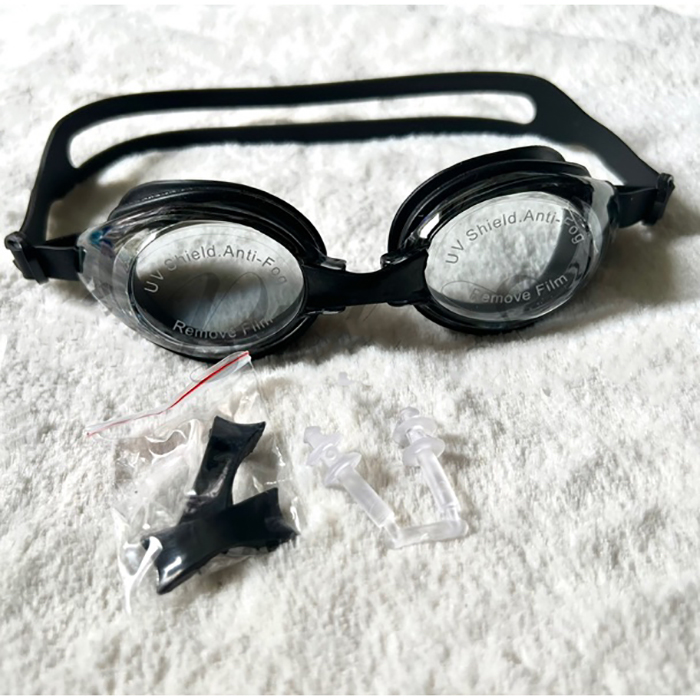 Kính bơi cho người cận thị, chống sương mù, chống tia UV, có bịt tai chống nước.