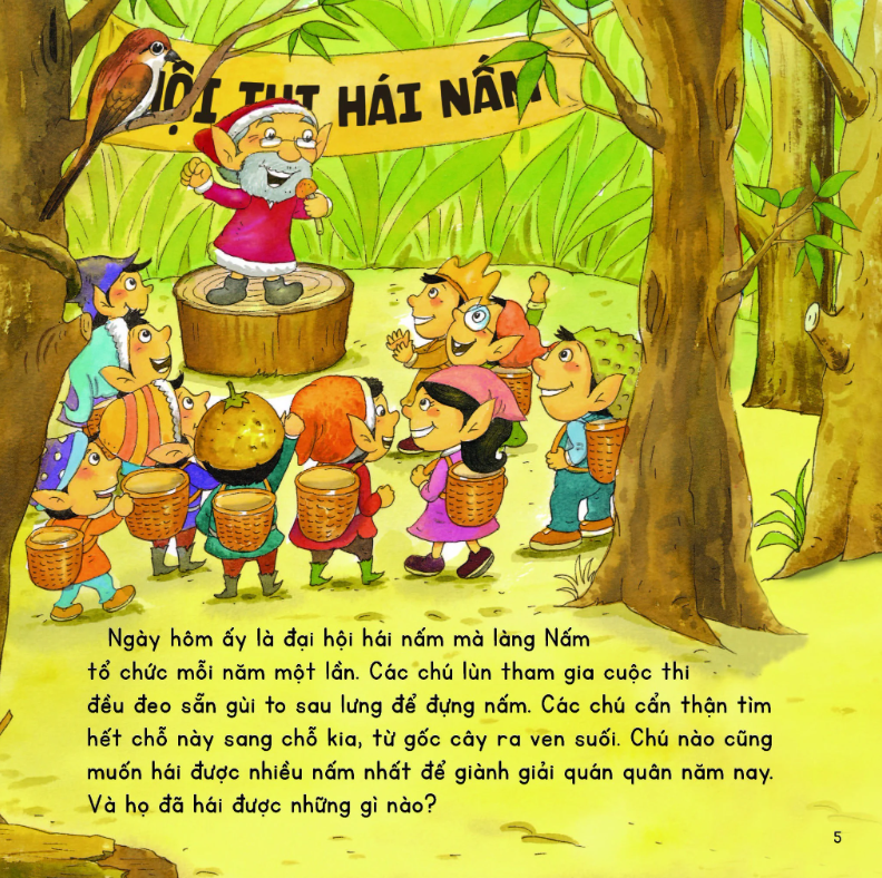 Làng Nấm thường tổ chức đại hội hái nấm mỗi năm một lần. Cư dân của làng Nấm là các chú lùn tí hon ra sức tìm kiếm những cây nấm thơm ngon, bổ dưỡng để giành giải quán quân năm nay. Và họ đã hái được những gì nào? Cùng theo dõi câu chuyện trong cuốn sách và tìm hiểu về những kiến thức lí thú về loài nấm nhé!