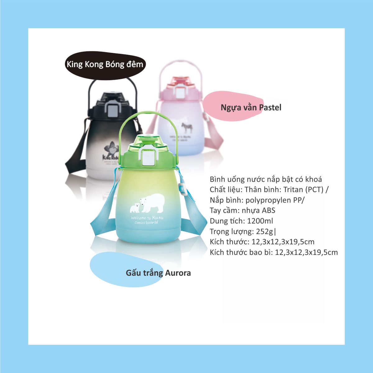 ✨KU.KU Duckbill bình nước cho bé từ 3 tuổi nhựa Tritan cao cấp 1200ml ku5622