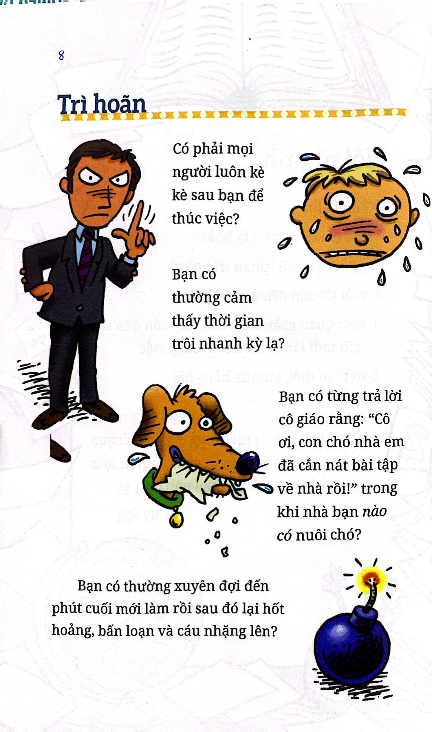 Trẻ em ngày nay nổi tiếng là hay trì hoãn mọi việc, các em rất dễ để bài tập về nhà và công việc nhà “xếp đống” ở đấy rồi mải chơi trò chơi điện tử, đi chơi với bạn bè, xem tivi hoặc lướt web. Với minh họa giống như thước phim hoạt hình đầy màu sắc và lối dẫn dắt nhẹ nhàng, thân thiện với trẻ em, Bệnh trì hoãn ư? Đừng sợ! dạy trẻ cách tạo động lực cho bản thân, duy trì động lực và hoàn thành công việc. Nội dung chính của cuốn sách bao gồm: