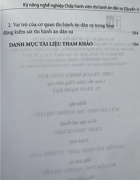 Kỹ năng nghề nghiệp Chấp hành viên thi hành án dân sự (Quyển 1) Tác giả: Ths. GV. Hoàng Thị Thanh Hoa - Ths. Hồ Quân Chính - TS. Nguyễn Văn Nghĩa Nhà xuất bản: Tư Pháp Năm phát hành: 12.2022 Khổ sách: 16*24cm Số trang: 600 Giới thiệu tóm tắt tác phẩm: Nhà Xuất bản Tư pháp và Nhóm tác giả: Ths. GV.Hoàng Thị Thanh Hoa, Ths. Hồ Quân Chính, TS. Nguyễn Văn Nghĩa xin trân trọng giới thiệu tới Quý bạn đọc cuốn sách mới “Kỹ năng nghề nghiệp Chấp hành viên Thi hành án Dân sự” Đây là cuốn sách chứa đựng những kỹ năng quan trọng và thiết yếu có giá trị tham khảo và ứng dụng cao đối với Chấp hành viên Thi hành án Dân sự trong quá trình tổ chức thi hành án. Cuốn sách dày 600 trang, kết cấu được xây dựng bám theo thủ tục THADS trên cơ sở cập nhật tất cả các văn bản pháp luật về THADS và các lĩnh vực pháp luật khác có liên quan được áp dụng đối với từng thủ tục một cách chi tiết giúp người đọc dễ dàng tra cứu. Những giá trị quý báu mà cuốn sách mang đến cho bạn đọc: ứng với mỗi tác nghiệp của Chấp hành viên đều được chỉ rõ cơ sở pháp lý; thủ tục thi hành án được phân tích chặt chẽ trên cơ sở quy định của pháp luật; cùng với những điểm nhấn cần lưu ý khi áp dụng pháp luật và những kinh nghiệm thực tiễn vào việc tổ chức thi hành án; trang bị những “kỹ năng mềm” cần thiết trong quá trình tổ chức thi hành án. Bên cạnh ý nghĩa là một cuốn sách “kỹ năng nghề” của Chấp hành viên, cuốn sách còn có giá trị tham khảo đối với những người làm công việc chuyên ngành Tư pháp như Kiểm sát viên, Thẩm phán, Thừa phát lại… và các học viên chuyên ngành Luật cũng như đông đảo Quý độc giả. Nhóm tác giả hy vọng cuốn sách “Kỹ năng nghề nghiệp Chấp hành viên thi hành án dân sự” sẽ là người bạn đồng hành tin cậy đối với đồng nghiệp công tác trong hệ thống Thi hành án dân sự và đông đảo Quý bạn đọc quan tâm! Giá sách là 260.000 đồng/cuốn.
