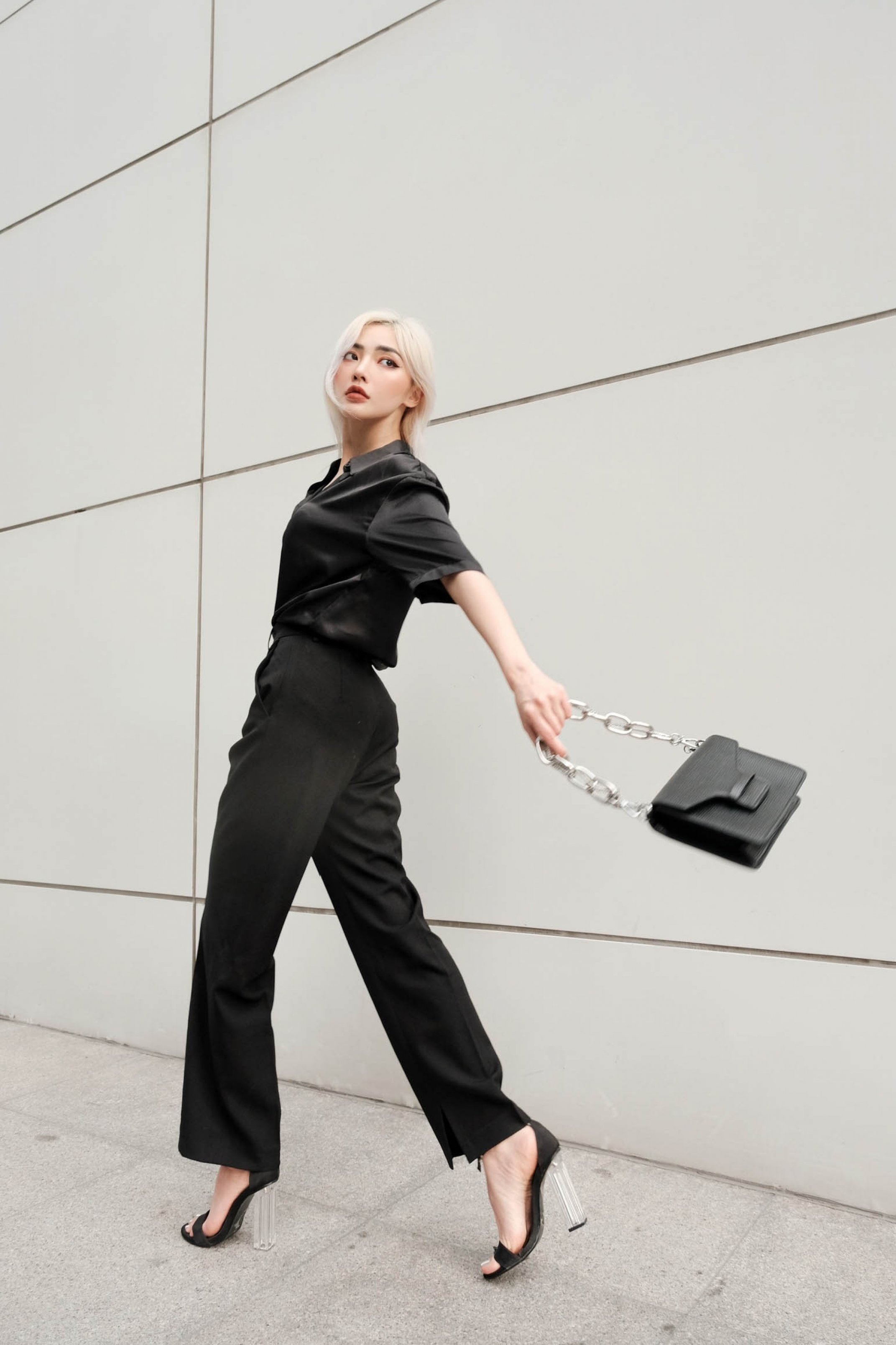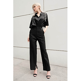 ✨LAAS Quần ống đứng xẻ trong đen thanh lịch