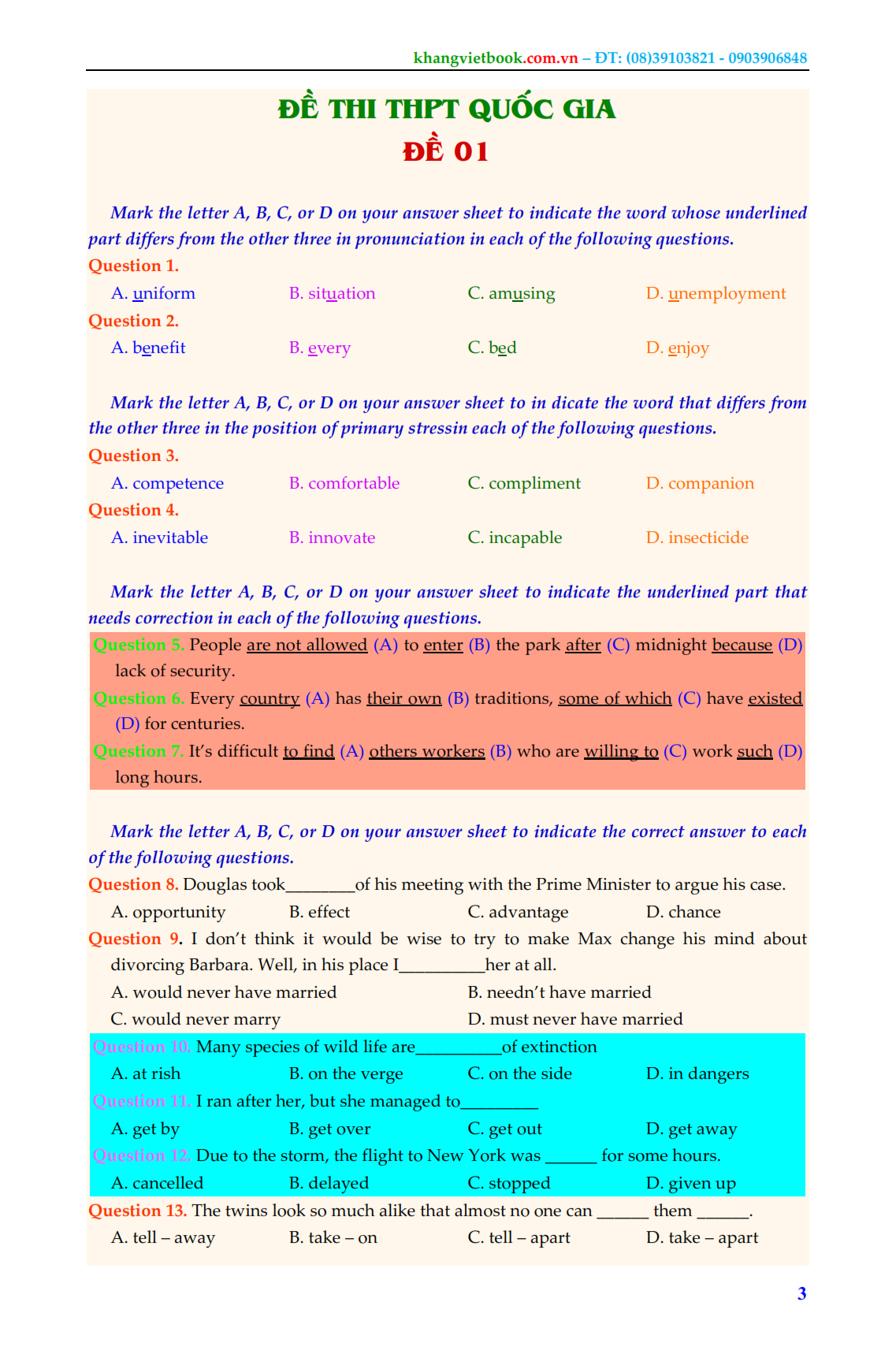 Bên cạnh đó, cuốn sách Làm Chủ Đề Thi Trắc Nghiệm Anh Văn được soạn theo đề minh họa của Bộ Giáo Dục, bám sát đề thi THPT Quốc gia, dễ dàng cho các bạn học sinh trong việc học tập và luyện thi bộ môn Tiếng Anh. Hi vọng rằng cuốn sách bổ ích này sẽ đồng hành cùng bạn chinh phục bộ môn Tiếng Anh cũng như đề thi một cách xuất sắc.