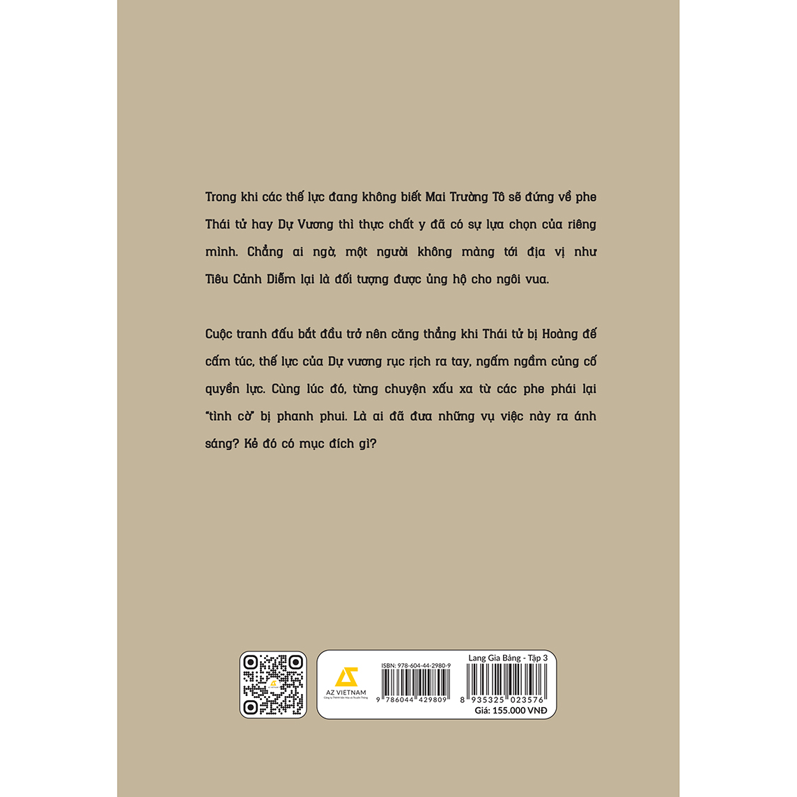 Mua tại TiktokGiới thiệu sách Sau khi kế hoạch hãm hại Quận chúa Nghê Hoàng thất bại, Thái tử bị Hoàng đế cấm túc. Nhân cơ hội này, phe phái Dự vương bắt đầu hành động, thâu tóm quyền lực về tay. Không ai có thể ngờ, Mai Trường Tô không đứng về phía Thái tử hay Dự vương mà lại lựa chọn Tiêu Cảnh Diễm - vị Hoàng tử không được chú ý, chẳng màng tranh đấu địa vị. Khi đi xem nhà mới, nhóm người Mai Trường Tô cùng Cảnh Duệ bất ngờ phát hiện ra vụ án giấu xác dưới giếng cạn, lật lại những bí ẩn của các phe phái năm xưa…