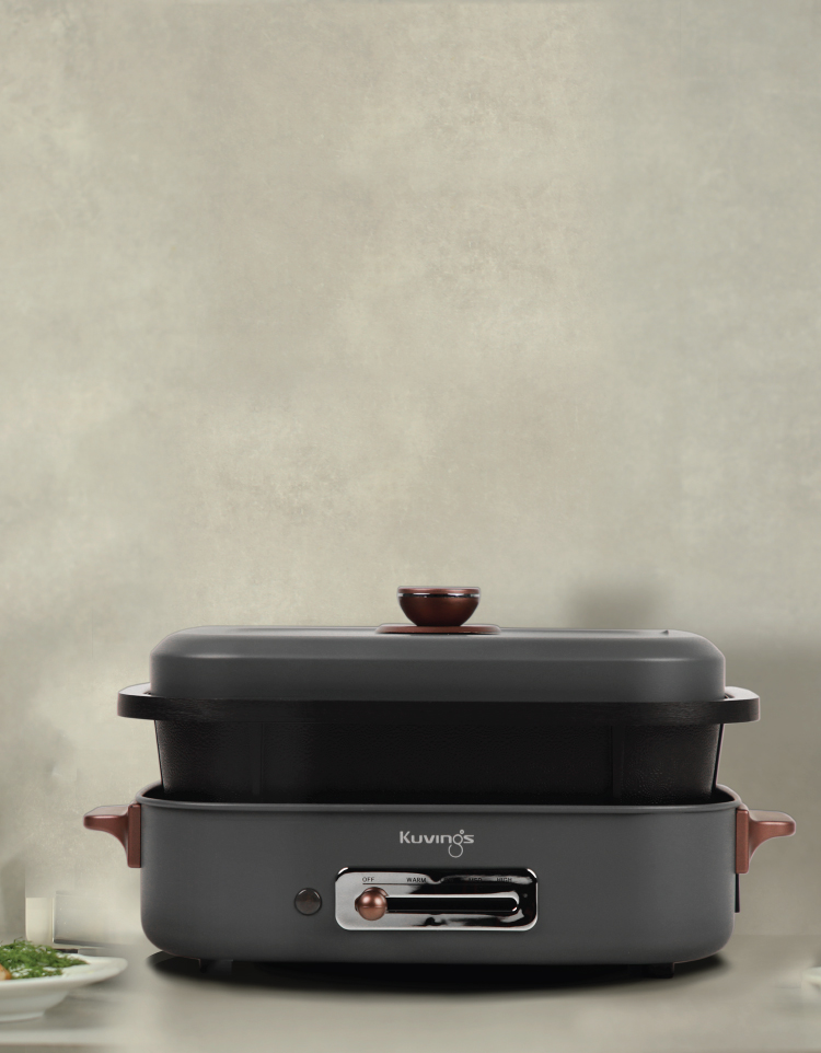 Nhằm đáp ứng sở thích ăn các món nướng và lẩu tại nhà mà không chứa nhiều dầu mỡ và an toàn cho người sử dụng. đã cho ra đời những mẫu Lẩu điện phủ gốm Ceramic đa năng hiệu cao cấp tại thị trường Việt Nam. Lẩu điện phủ gốm Ceramic đa năng Kuvings 2 trong 1 KMG-200B được sản xuất từ linh kiện cao cấp có độ bền cao không chứa chất độc hại. Thiết kế nhỏ gọn, sang trọng, hiện đại và an toàn theo phong cách “Newtro”.
