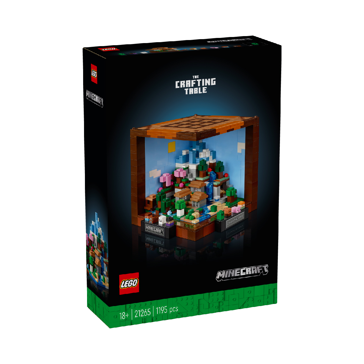 Bộ lắp ráp tái hiện lại hộp chế tác mang tính biểu tượng của trò chơi. Bên trong là 5 mô hình lắp ráp nhỏ mang lại 12 quần xã sinh vật Minecraft, bao gồm Taiga với một hang động đá vôi, Đồng bằng với một ngôi làng nhỏ, Ice Spikes với lều tuyết, Cherry Grove với một hầm mỏ bỏ hoang và Deep Dark với một hang động xanh tốt. Bao gồm 8 nhân vật nhỏ: Steve, Alex, một bộ xương, phù thủy, Creeper, dân làng, bò và lợn.