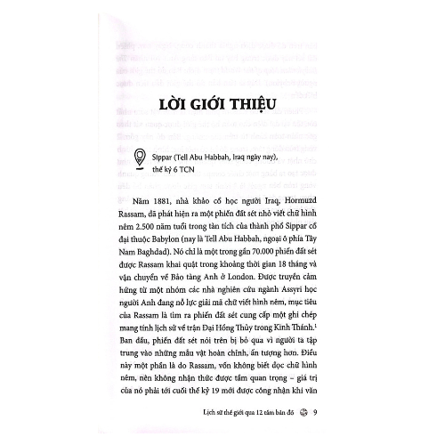 Xuyên suốt chiều dài lịch sử, bản đồ là nền tảng trong việc định hình quan điểm của chúng ta về thế giới và vị trí của ta trong thế giới đó. Không chỉ là những đối tượng khoa học thuần túy, bả.n đ.ồ th.ế g.iới còn gắn bó mật thiết với hệ thống quyền lực tại thời điểm và địa điểm cụ thể. Trong cuốn sách thú vị này, Jerry Brotton xem xét tầm quan trọng của 12 tấm bản đồ – từ những bản đồ thời cổ đại đầy huyền bí tới bản đồ hình ảnh vệ tinh chuẩn xác hiện nay. Ông đã tái hiện sống động môi trường và hoàn cảnh mà mỗi tấm bản đồ được tạo ra, từ đó cho thấy cách thức mỗi tấm bản đồ phản ánh và truyền tải một góc nhiền rất riêng về thế giới, để từ đó chúng ta hiểu rõ hơn về thời đại đã khai sinh ra nó.