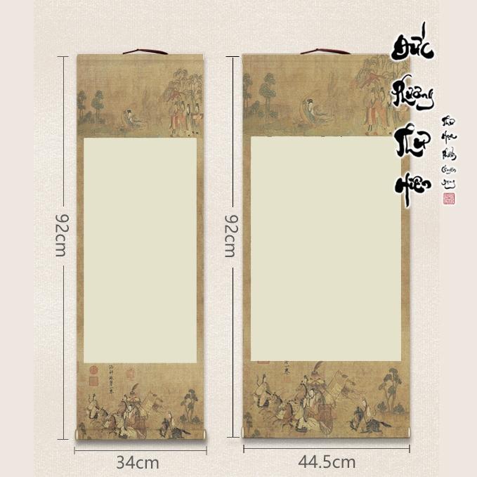 Biểu lụa bồi giấy xuyến có trục treo, nút gỗ chuyên dùng viết thư pháp, vẽ tranh thuỷ mặc, màu nước nhiều màu sắc & kích cỡ Sản phẩm này là tài sản cá nhân