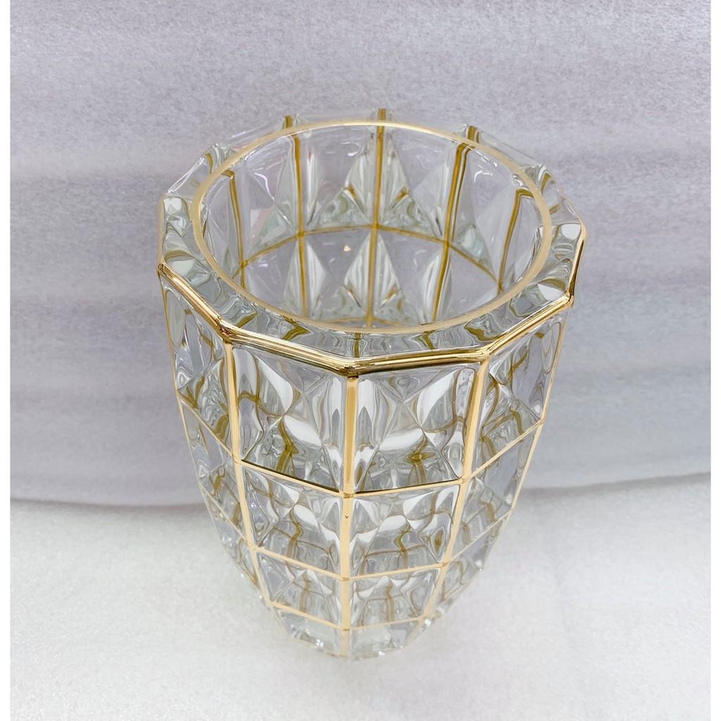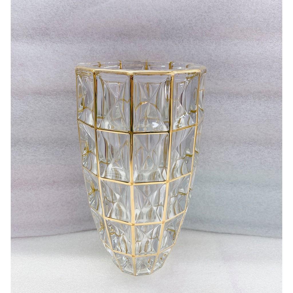 ✨Lọ cắm hoa thủy tinh cao cấp viền vàng mắt vuông 30cm