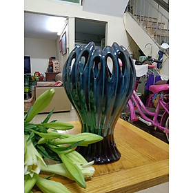 Lọ hoa men xnah hoả biến gốm bát tràng tinh vân 0986469896