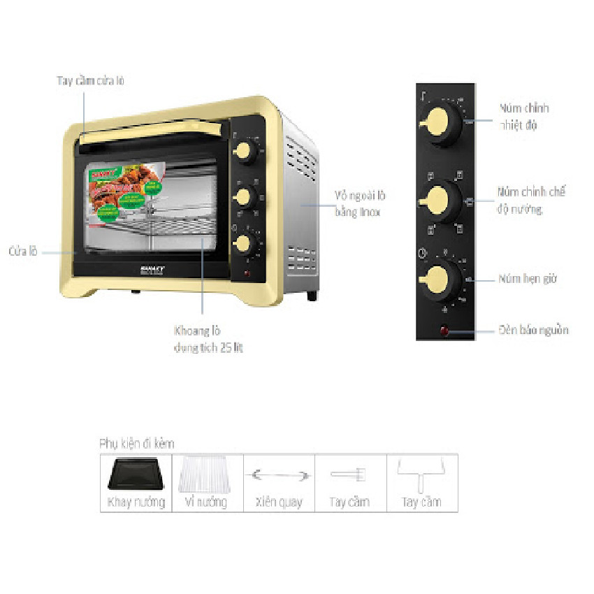 Tính năng nổi bật: - Công suất lò : 1800W - Dung tích lò : 40 Lít - Nhiệt độ nướng : 70 - 230 độ C - Hẹn giờ : Tối đa 60 phút