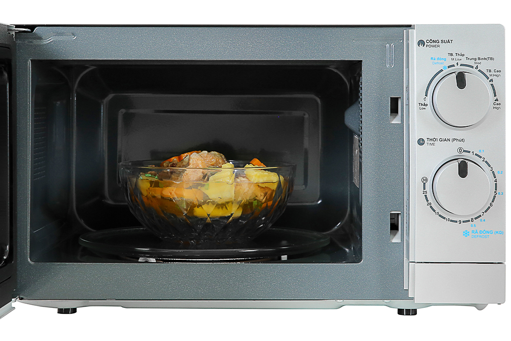 Tính năng nổi bật : – Bảng điều khiển cơ học dễ dàng sử dụng – 6 mức công suất linh hoạt cho ngưởi sử dụng – Tích hợp chức năng nướng tiện dụng – Thiết kế sang trọng hiện đại.   THÔNG SỐ KỸ THUẬT Đường kính đĩa 24,4cm Công Suất Đầu Ra (vi sóng) 700W Công Suất Đầu Vào(vi sóng) 1100W Điện Áp 220v-50hz Dung Tích Lò Vi Sóng 20L Trọng lượng khoảng 10,5 kg Công Suất Nướng 720W Kích thước bề ngoài (cm) 47 x 38 x 28.5