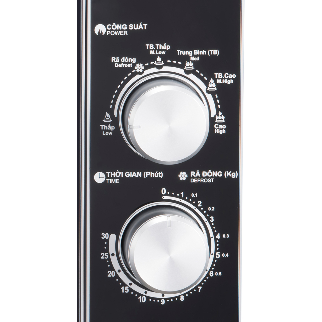 Tính năng nổi bật : – Bảng điều khiển cơ học dễ dàng sử dụng – 6 mức công suất linh hoạt cho ngưởi sử dụng – Tích hợp chức năng nướng tiện dụng – Thiết kế sang trọng hiện đại. THÔNG SỐ KỸ THUẬT Đường kính đĩa 24,4cm Công Suất Đầu Ra (vi sóng) 700W Công Suất Đầu Vào(vi sóng) 1100W Điện Áp 220v-50hz Dung Tích Lò Vi Sóng 20L Trọng lượng khoảng 10,5 kg Công Suất Nướng 720W Kích thước bề ngoài (cm) 47 x 38 x 28.5