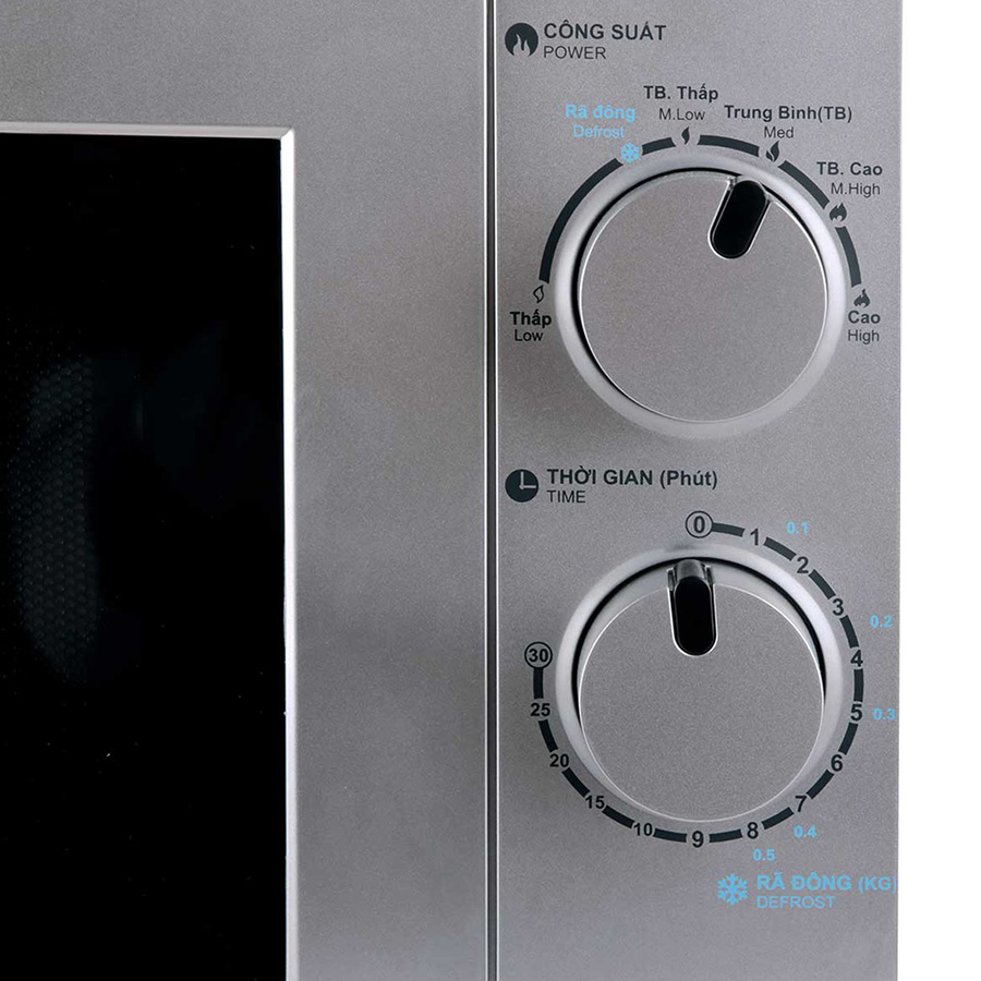 Lò Vi Sóng Sharp R-209VN-SK được trang bị điều khiển nút vặn có chỉ dẫn tiếng Việt, phù hợp với nhu cầu sử dụng cho ít người và các chức năng đơn giản.