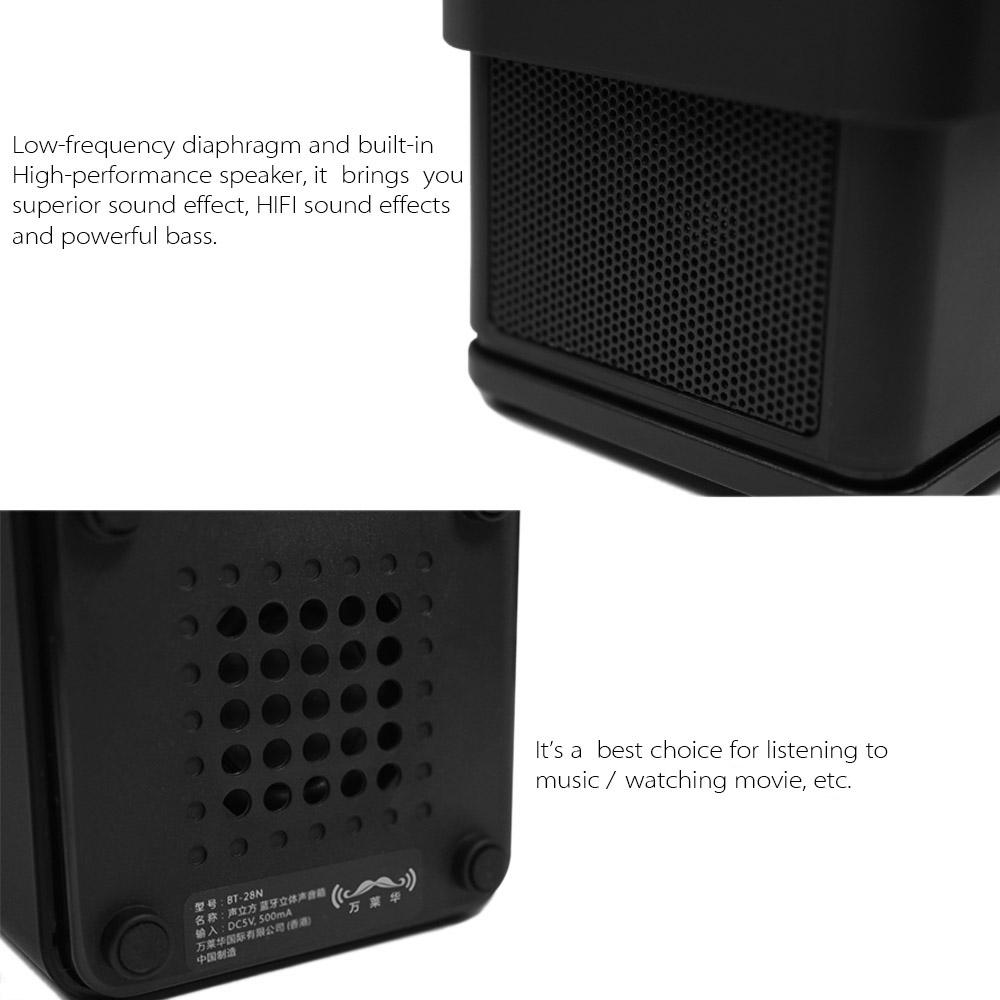 This superb sound stereo speakers is compliant with BT 3.0. It is powered by its bulit-in battery which is rechargeable by USB port.With strong compability, 2x2W Amplified Speakers 6 hours of continuous music time. What's more, it is portable, shrinkablewhich is suitable for going out like hiking, traveling, ect. Features: Compatible with almost all BT-enabled mobile devices such as, compatible with iPhone6 6Plus 5S, compatible with Samsung Galaxy S5 S4 S3 / Note 4 3 2, compatible with HTC One, Tablet PC, Laptop, etc. 3.5mm audio connector provides a simple wired connection of a variety of music players (Such as, MP3 / MP4, etc) without BT function. Supports hands-free function, conveniently answer the incoming call. Supports NFC function. With 700mAh high-quality built-in Lithium battery, it can offer 5 hours of continuous music and talk time, standby time is up to 20 hours. Be equipped with built-in High-performance speaker and Mic, , brings you superior sound effect, best choice for listening to music / FM Radio, watching movie, etc. Portable Speakers is perfectly suitable for going out like hiking, traveling, ect. Specifications: Brand:MANOVA Model: BT-28N BT Version:3.0+EDR Amplifier Output: 2 2.2W Signal-to-Noise: 60dB Frequency Response: 100HZ-20000KHz Operation Voltage: Min: 3V Max: 4.2V DC Battery Charging Voltage: Type: 5V Max: 5.5DC Battery Charging Time: 2.5 hours Playback Time: 5 hours Standby Time: up to 20 hours Speaker Size: Approx.8.1 7.5 7.5cm / 3.19 2.95 2.95in  Speaker Weight: Approx.292g / 10.27oz Package Size: Approx.10 10 10cm / 3.94 3.94 3.94in Package Weight: Approx.462g / 16.32oz Package List: 1 Speaker 1 USB Cable 1 Audio Cable 1 * User Manual (English)