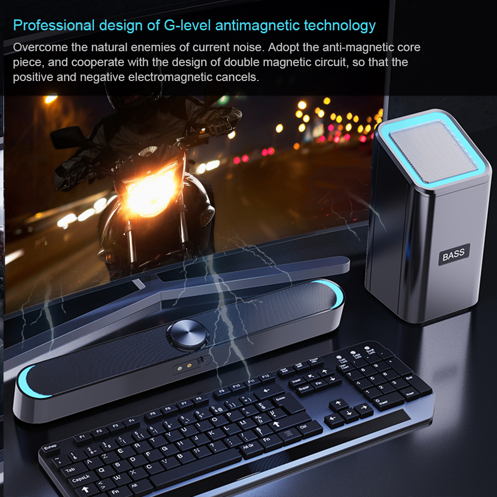 Overview: If you are finding a characteristic soundbar, this product is your dreaming item. Sound Bar uses unique noise reduction technology to equip your computer with high-quality full-range speakers. It is loud and clear, with