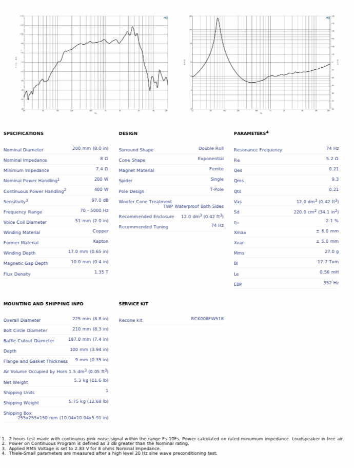 Voice coil loa B&C SPEAKERS 8FW51 được thiết kế có độ thông thoáng nhất định giúp bảo vệ loa. Khối lượng: 5.3 kg