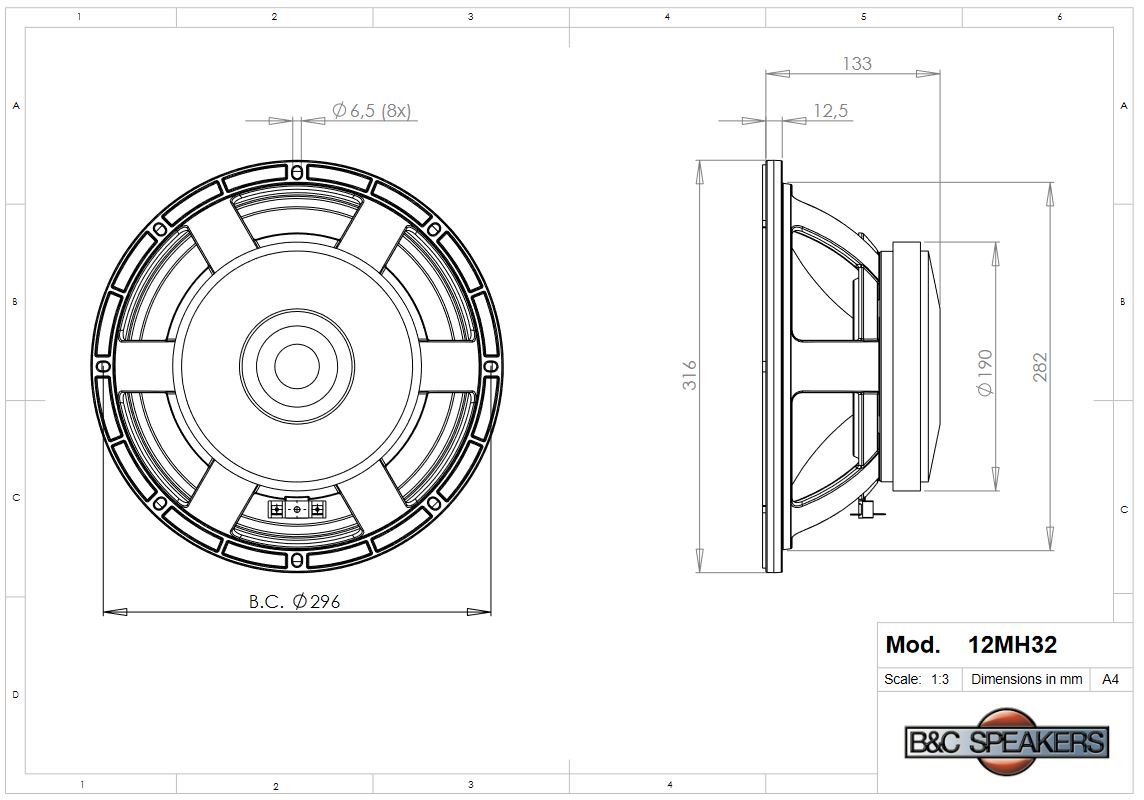 Loa bass rời 3 tấc (12 inches) B&C Speakers 12MH32 có công suất 400/800 W, coil loa bằng đồng 76 mm, tần số 50 – 3000 Hz, độ nhạy 101 dB, nam châm từ Ferrite mạnh mẽ, trở kháng 8 ohms, là lựa chọn lý tưởng cho việc lắp đặt hệ thống âm thanh sân khấu FOH, hệ thống âm thanh trực tiếp, loa monitor, karaoke và nhiều ứng dụng âm thanh khác.