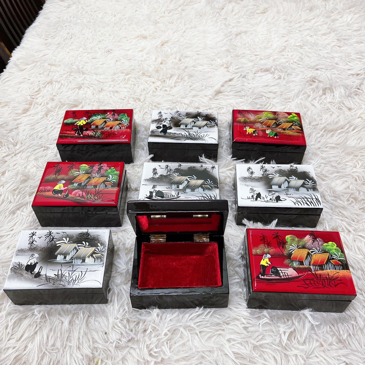 ✨Loại 1- Hộp Đựng Đồ Trang Sức Bằng Gỗ Sơn Mài 8x11cm Lót Vải Nhung Đỏ Sang Trọng