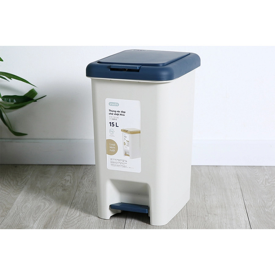 ✨[Loại Kèm Ruột] Thùng rác đạp chữ nhật Hiro 15L (Tặng kèm Sticker) - Chính Hãng INOCHI