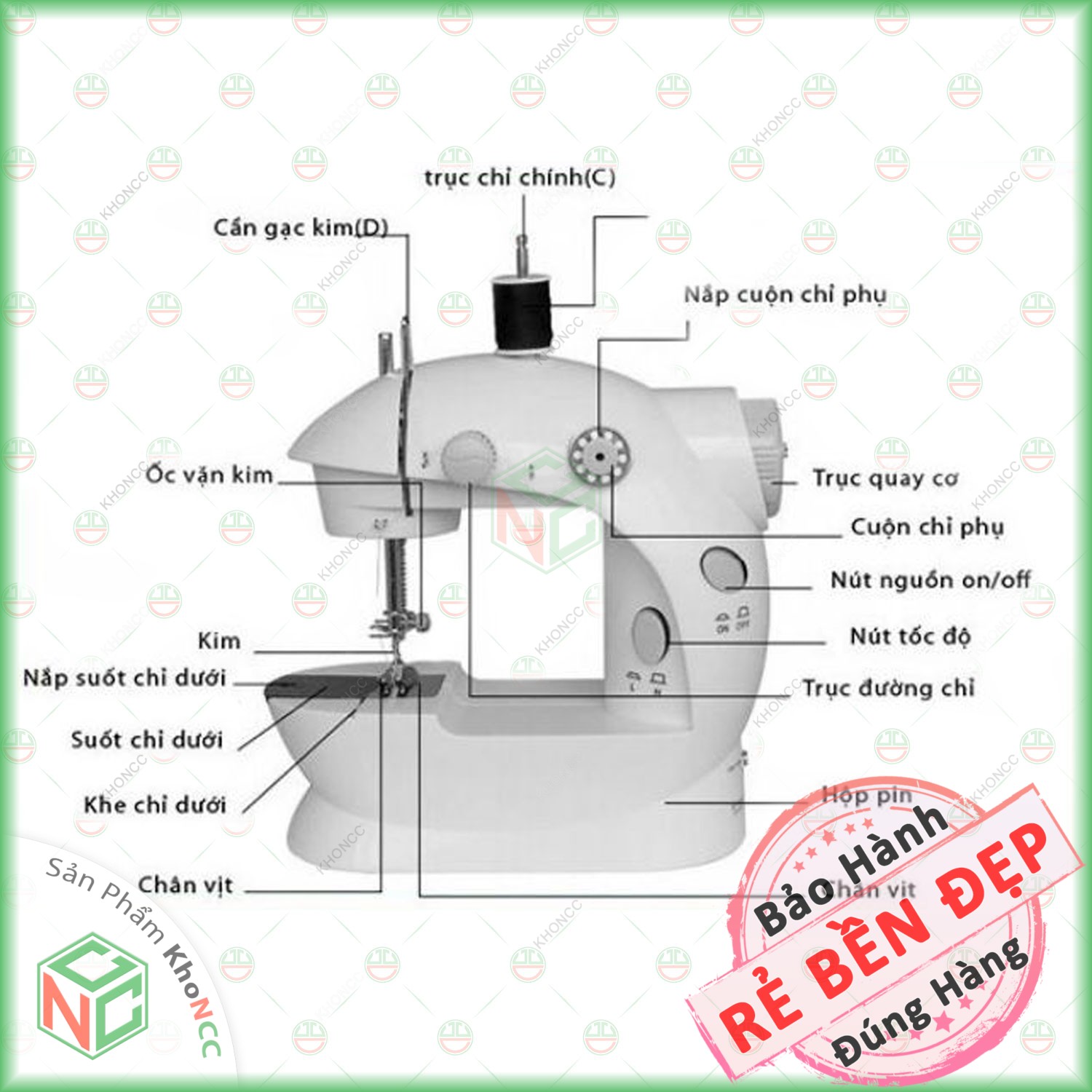 ✨(Loại Tốt) Máy May Mini KhoNCC Hàng Chính Hãng - Dùng Trong Gia Đình Để Bàn Có Đèn Led KhoNCC-KLM-CM202-MM (Màu Trắng)