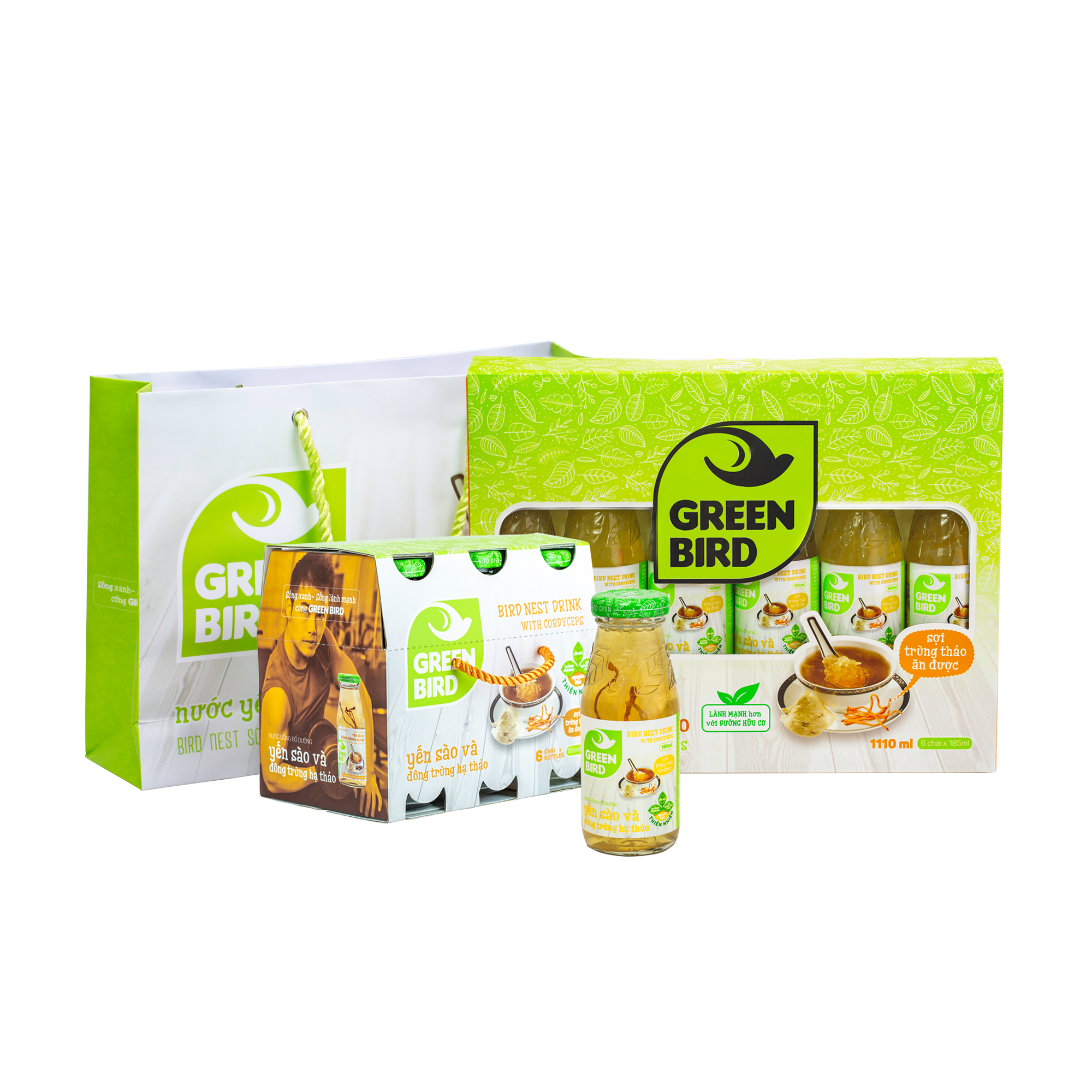 ✨Lốc Green Bird - Nước Uống Bổ Dưỡng Yến Sào Và Đông Trùng Hạ Thảo - (6chai*185ml)